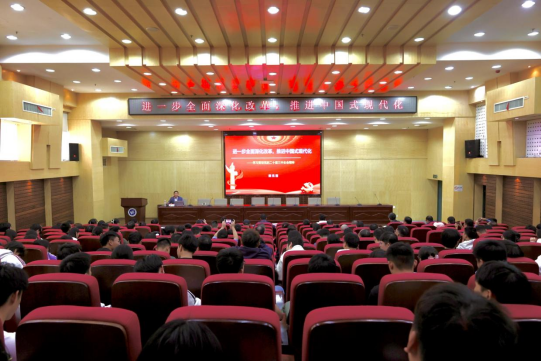 魏克湘从党的二十届三中全会基本概况和重大意义、主要内容和精神把握、党的二十届三中全会精神的全面贯彻落实三个方面进行系统阐述。他指出,党的二十届三中全会不仅是对改革实践的总结,更是对未来新时代全面深化改革发展宏伟蓝图的规划。中国推动改革开放以来,由摸着石头过河、到顶层设计、再到全面深化改革的重大部署,经过多年的探索,改革开放已经深入人心。师生们要深刻领会会议精神,全面深化改革,以实际行动推进中国式现代化建设。