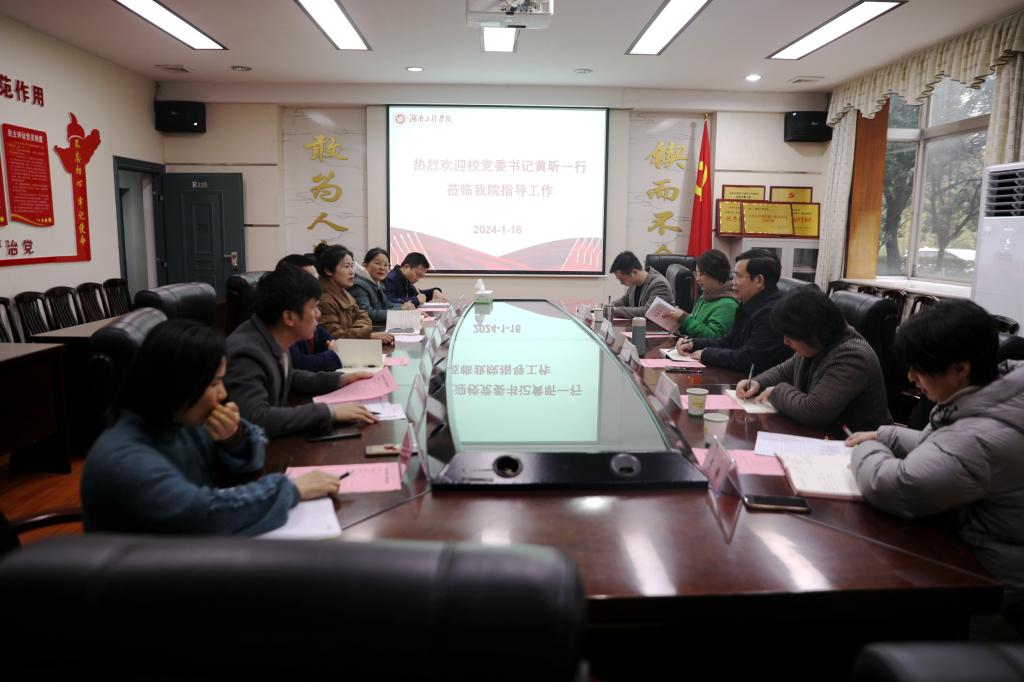 1月16日上午,校党委书记黄昕带队到tyc5997太阳集团调研指导工作,人事处、研究生工作处、人文通识教育中心相关负责人陪同调研。院班子成员、学科办岗位负责人、教授和博士代表参加调研座谈会,党总支书记谢卫平主持会议。