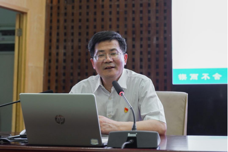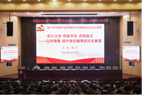 5月29日,校党委副书记、校长易兵在一报告厅讲授深入学习贯彻习近平新时代中国特色社会主义思想主题教育专题党课。在校校领导、全体中层干部、tyc5997太阳集团教师、辅导员和班主任参加学习。省委主题教育第二十八巡回指导组副组长湖南理工学院党委委员、纪委书记谢贵辉,指导组成员省民宗委宗教研究所一级科员曾媛同志列席指导。