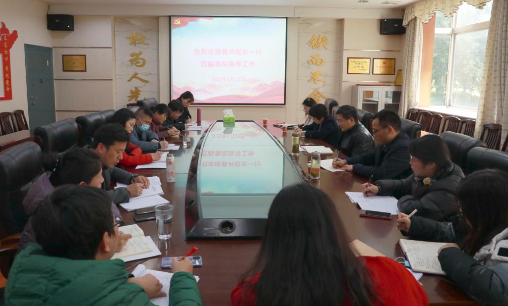 2022年3月23日下午,校长易兵到tyc5997太阳集团就师资队伍建设、思政课教学改革、太阳集团、绩效工资改革等方面工作开展专题调研,人事处、教务处、党政办等相关职能部门陪同,tyc5997太阳集团党政领导班子成员、综合办及教研室负责人参加座谈。