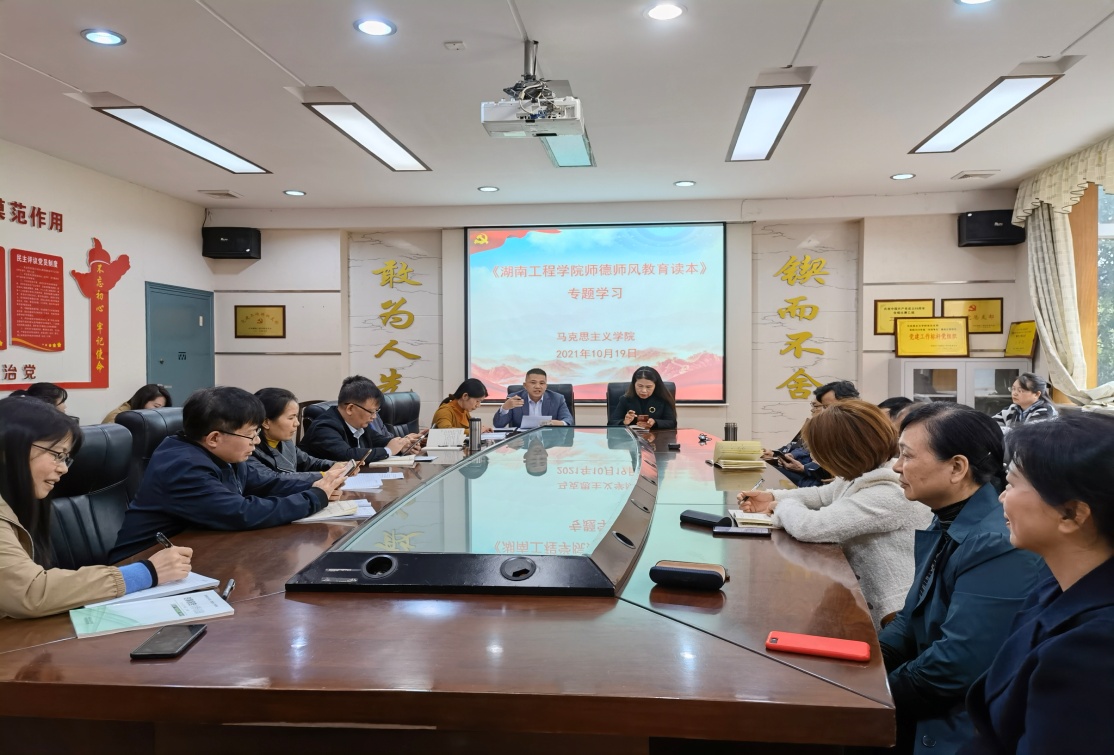 2021年10月19日下午,tyc5997太阳集团在E125会议室举行《tyc5997太阳集团师德师风教育读本》专题学习,党总支书记邓学源主持学习,学院全体教职工参加学习。