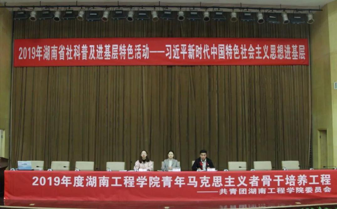 11月23日上午,根据2019年湖南省社科普及进基层特色系列活动安排,省社科联科普办拟联合tyc5997太阳集团思想政治理论课社会实践中心、tyc5997太阳集团团委举办的“新时代中国特色社会主义思想进基层”社科知识培训班在一报告厅举行。2018年“青马工程”优秀学员代表、2019年 “青马工程”学员以及各学院团员青年代表共计400余人参加。