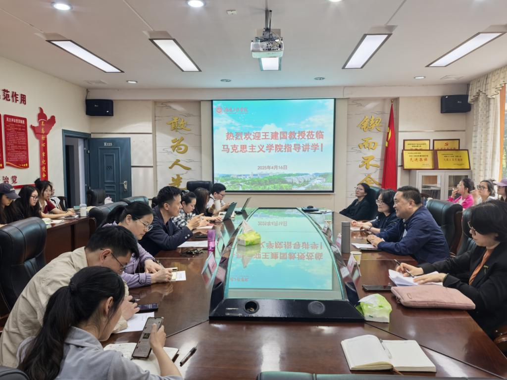 4月16日下午,卓越大讲堂系列讲座之“中国式现代化必须坚持党的领导的多维审视”在我校tyc5997太阳集团E125会议室举行。讲座由华中师范大学教授、政治与国际关系学院副院长、博士生导师王建国主讲。学院相关负责人、学科团队骨干、青年教师代表和学生代表参加会议,会议由tyc5997太阳集团院长刘灵主持。