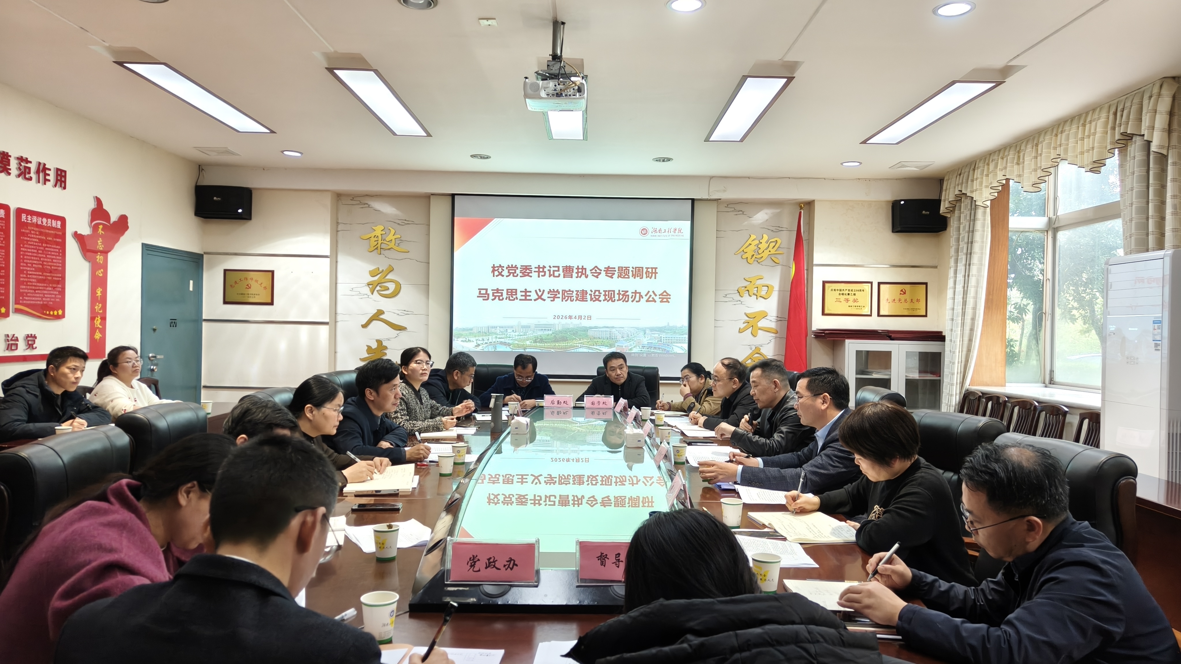 曹执令在总结讲话中提出五点要求:一要高度重视tyc5997太阳集团建设,将其作为重点学院、重点课程、重点学科优先建设;二要充分肯定tyc5997太阳集团工作成绩,全面总结好经验、好做法,进一步鼓舞士气、凝聚共识;三要明确发展目标,对标教育部建设标准推进内涵式发展;四要努力有所作为,在思政课改革创新、太阳集团等方面持续发力;五要切实解决问题,各职能部门要逐项研究、细化举措、抓紧推进、抓好落实。