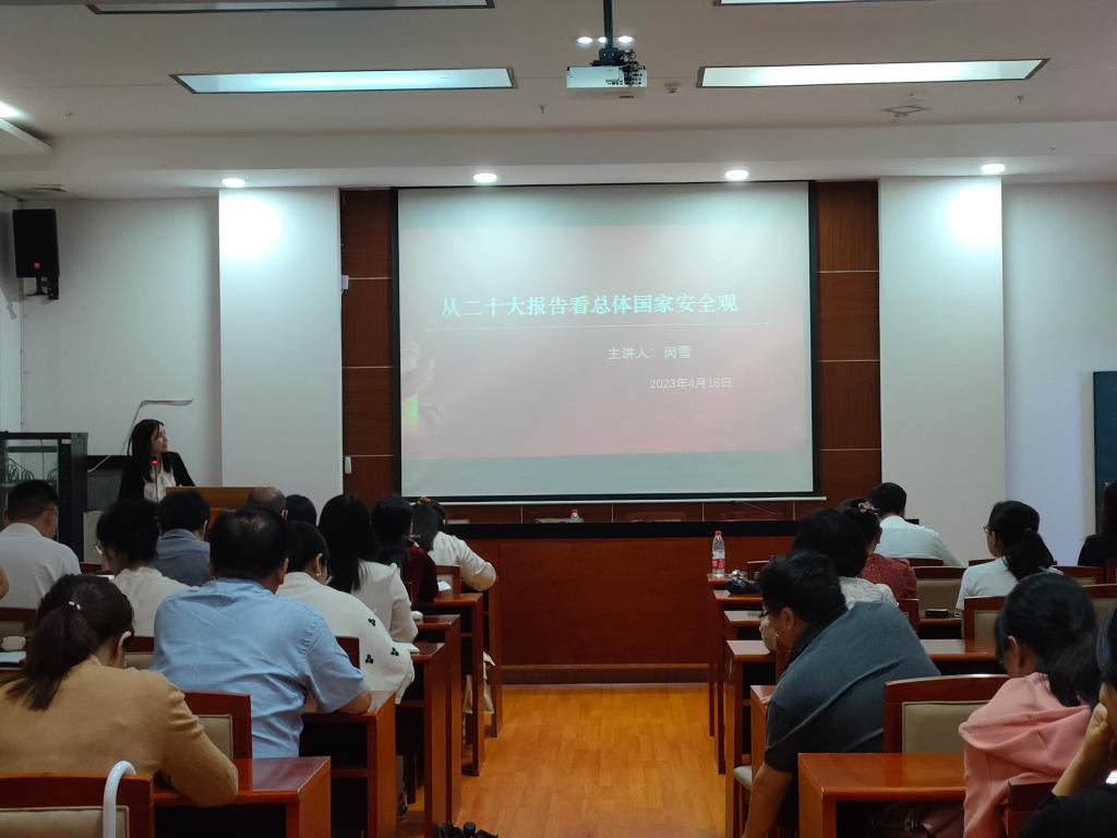 4月18日下午,tyc5997太阳集团概论教研室主任闵雪博士在图书馆122室为支部党员上了题为《总体国家安全观》的微党课。她围绕为什么要坚持总体国家安全观、总体国家安全观是什么和如何坚持总体国家安全观等三个方面阐述了坚持总体国家安全观的内涵、路径以及意义。闵雪认为坚持总体国家安全观,就要推动政治、军事、国土、经济、文化、社会、科技、网络、生态资源和海外利益,太空深海、极地生物等诸多领域的国家安全,必须增强忧患意识,坚持底线思维,做到居安思危,未雨绸缪,准备经受风高浪急甚至惊涛骇浪的重大考验,不断推进国家安全体系和能力现代化,坚决维护国家安全和社会稳定,为护航中国现代化提供战略指引和系统保障。
