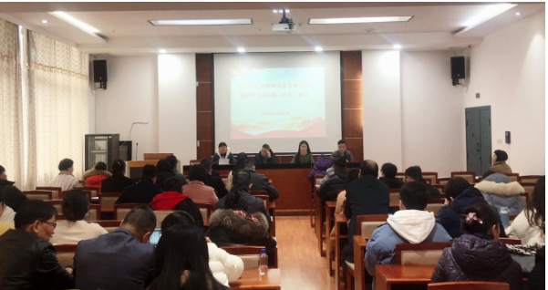 12月6日下午,tyc5997太阳集团党总支部理论学习中心组在图书馆122会议室开展了第十三次理论学习中心组(扩大)学习,党总支部书记谢卫平主持会议,全体教职工参加学习。