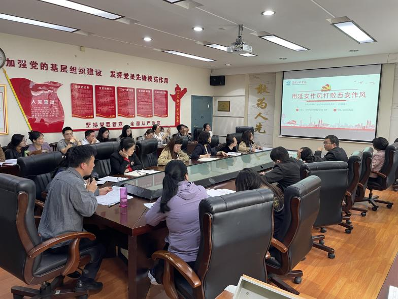 会上,刘灵以《用延安作风打败西安作风》为题带头讲“微党课”,与会人员认真学习《习近平关于加强党的作风建设论述摘编》《中央八项规定及其实施细则精神》《习近平:强化教育对科技和人才支撑作用,形成人才辈出人尽其才才尽其用生动局面》等重要文献,各支部党员围绕学习主题展开研讨。通过领学与研讨相结合的方式,全体教职工深刻领会到党风建设的重要意义以及新时代教育工作者的使命担当。