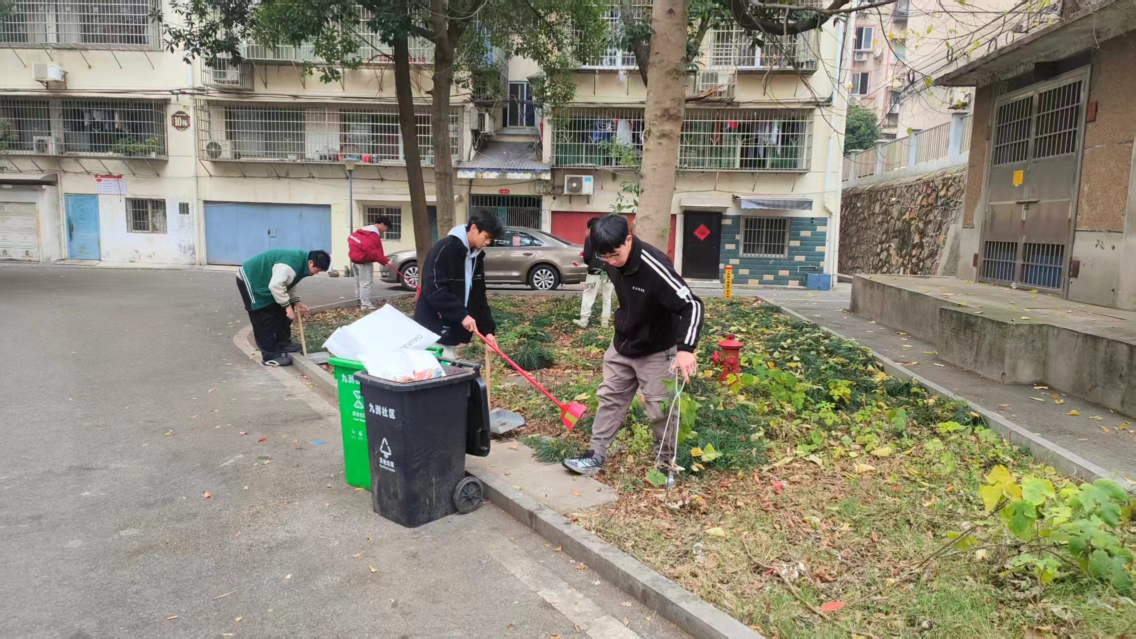 活动现场,“诚信、友善”的社会主义核心价值观内涵被学子们转化为具体行动。大家主动与社区工作人员深入对接,全程井然有序听从统筹安排,用真诚交流传递青年温度,以谦逊态度展现当代大学生的良好风貌。志愿服务中,同学们分工明确、默契协作:三人一组手持扫帚与撮箕,对社区主干道进行全面清扫;两人搭档操控夹子,细致挑拣花坛中隐匿的白色垃圾,不放过任何卫生死角。从社区内八九十栋居民楼前到小学周边人流密集路段,志愿者们始终一丝不苟、任劳任怨,用双手为居民打造整洁舒适的生活环境,让志愿红成为社区最亮眼的风景线。