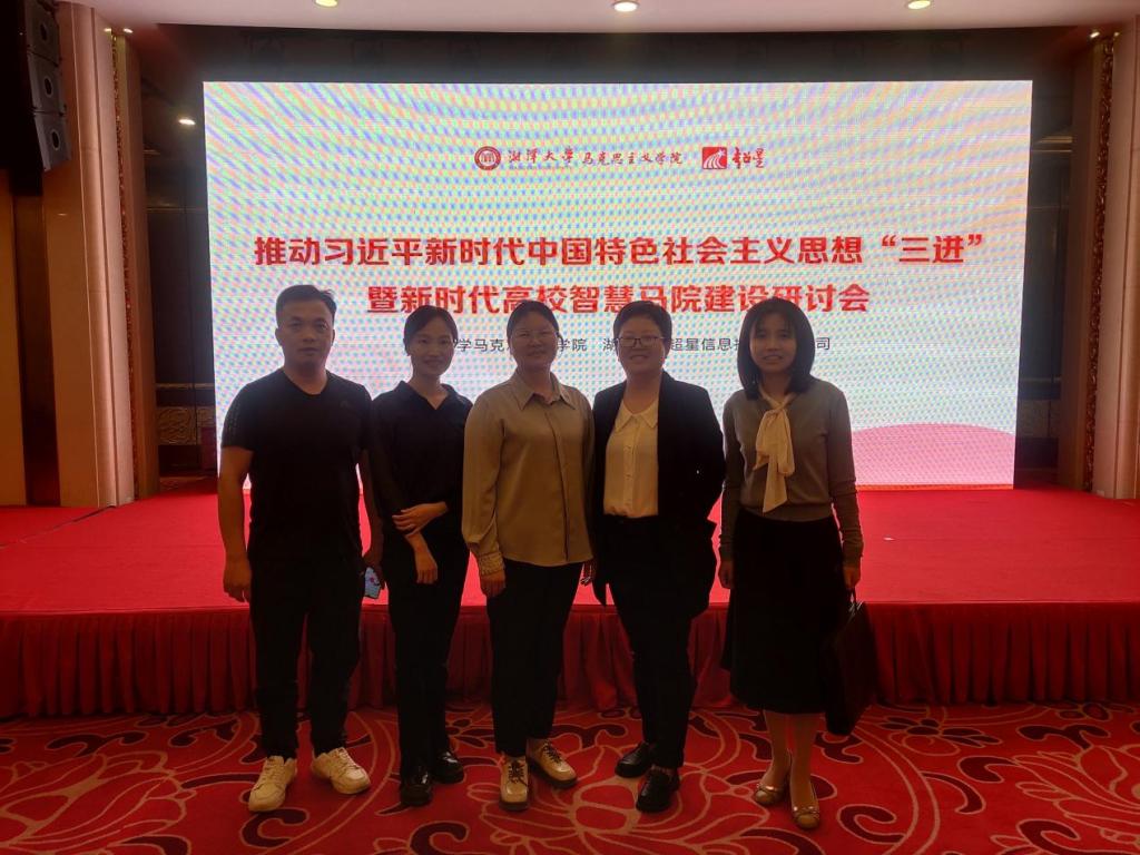 2024年5月31日,湘潭大学tyc5997太阳集团联合湖南世纪超星信息技术有限公司在湖南省长沙市召开推动习近平新时代中国特色社会主义思想“三进”暨新时代高校智慧马院建设研讨会。学院副院长汤菊平,教师钟立华、田小玲、闵雪、张玉洁参加会议。