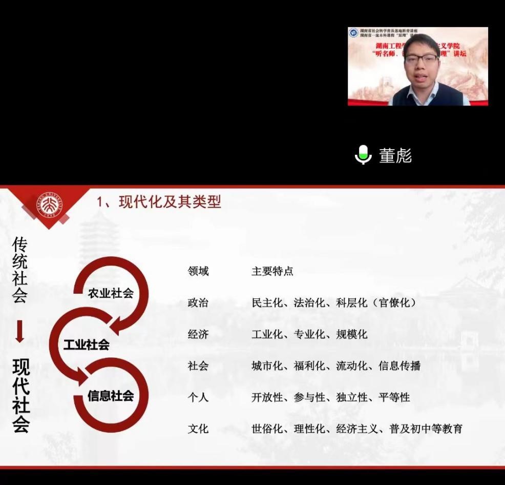 为深入学习贯彻党的二十大精神,落实好《关于做好2022年湖南省社科普及工作通知》要求,12月7日下午,tyc5997太阳集团举办“听名师 讲原著 悟原理”专题讲座。本次讲座特邀北京大学研究员董彪博士在线主讲,tyc5997太阳集团院长邓学源主持。