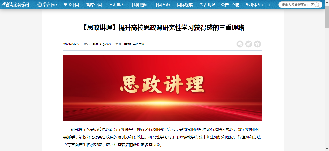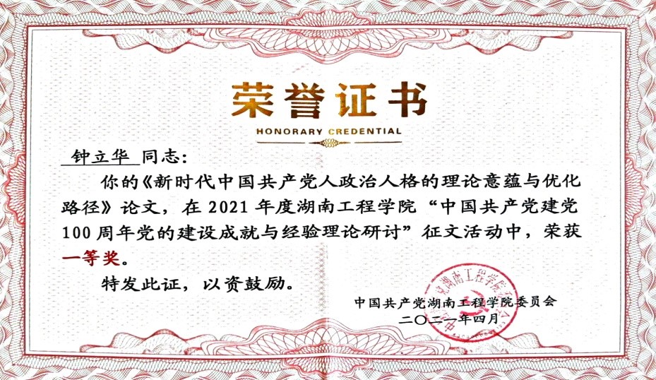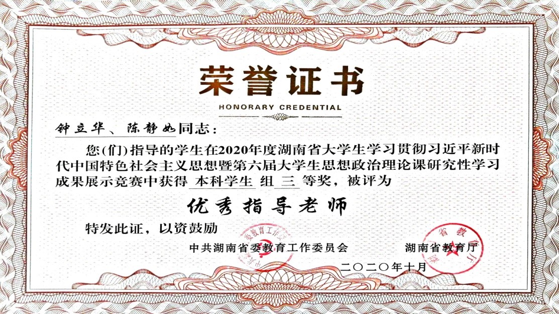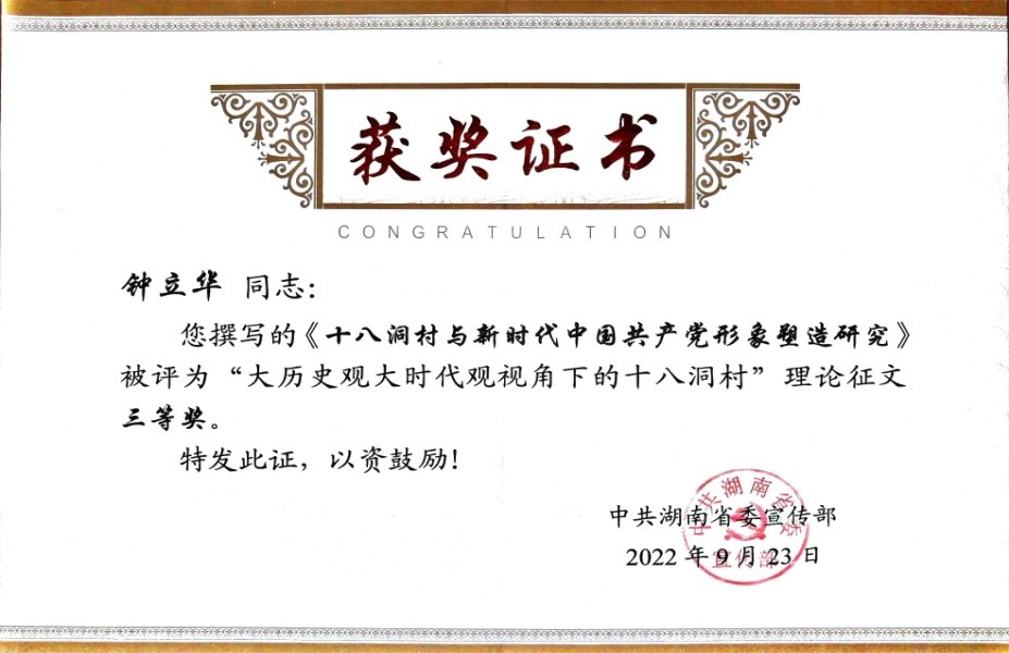 四、理论研究初显成效。该同志在从事思政课教学的同时,积极开展党的创新理论研究,参加理论宣讲、发表理论文章,较好地实现了教研相长。他担任tyc5997太阳集团第26期团校培训授课教师;担任湘潭市教育局党委第二十三期入党积极分子和发展对象培训班授课专家。入职以来发表文章10篇,出版合著1部,多篇理论文章在人民日报内刊《党建参阅》、学习强国、中国社会科学网、红网、云南网等平台发表或转载,获得湖南省委宣传部、组织部、湖南省高校思政研究会、tyc5997太阳集团、湘潭市委宣传部、湘潭市社科联、长沙市委宣传部等各级奖励十余项。