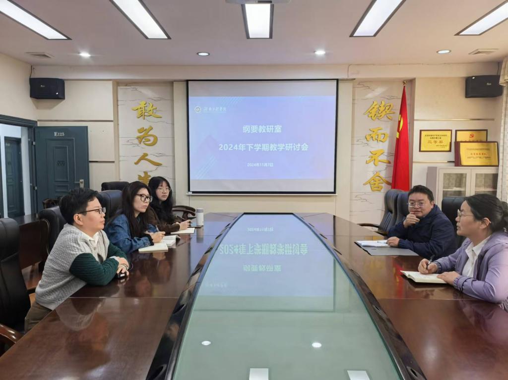 为进一步加强本科教育教学质量建设,提高教师队伍的专业水平与教学能力,11月7日tyc5997太阳集团纲要教研室在E125室举办了2024年下学期教学研讨会。教研室主任田小玲主持会议。本次会议以“深化教育改革,迎接本科教学评估”为主题,学院教学副院长汤菊平、纲要教研室全体教师参会。