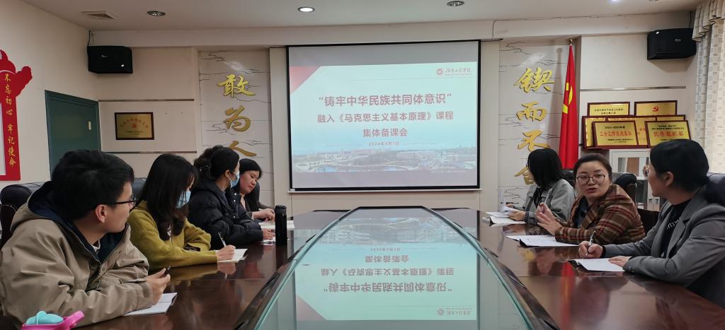 为了加强任课教师对“铸牢中华民族共同体意识”融入《马克思主义基本原理》课程内容的理解和把握,不断丰富思政课教学内容,提升思政教师教学实效,4月7日下午,我院马克思主义基本原理教研室举办集体备课会,备课会由教研室主任陈灿主持,副院长汤菊平教授和教研室全体教师参加会议。