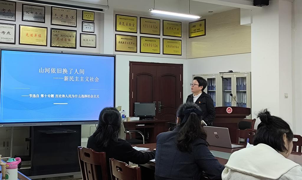 值此中国共产党成立103周年、新中国成立75周年之际,我院纲要教研室田小玲老师以《山河依旧 换了人间——新民主主义社会》为题进行了45分钟的党史学习教育主题课堂教学展示,从历史与现实等多方面深刻剖析了新中国为什么需要且为什么只能经过新民主主义社会过渡到社会主义社会,并从政治、经济、文化等多角度阐明了新民主主义社会形态的具体内涵。