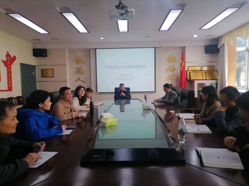 3月18日上午,为推动思想政治理论课改革创新,不断增强思政课的思想性、理论性和针对性,中国近现代史纲要教研室举办集体备课活动,备课会由副院长汤菊平主持。院长邓学源和纲要教研室全体教师参加此次活动。