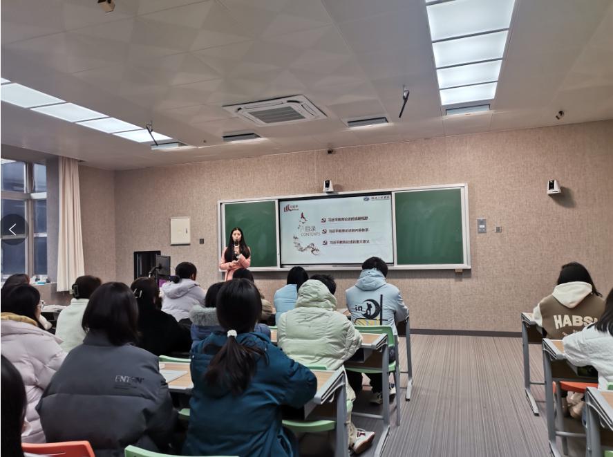 陈柳柯从习近平总书记关于教育重要论述的战略视野、内容体系、重大意义等三个方面展开讲授。通过阐述国内、国际环境与教育根本问题的背景,带领学生学习习近平总书记关于教育的丰富内容体系,引导学生感受习近平总书记关于教育重要论述的时代意义与世界意义,勉励大学生为全面建设社会主义现代化国家努力学习奋发有为。