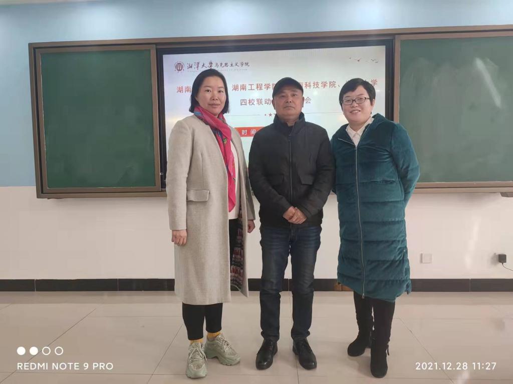 12月28日上午,为贯彻落实习近平总书记在学校思想政治理论课教师座谈会上的重要讲话精神,促进tyc5997太阳集团内涵式发展,我院《中国近现代史纲要》教研室教师前往湘潭大学tyc5997太阳集团参加同城备课会。中国近现代史纲要教研室陈坚、李琼琼、田小玲等三位教师参加了会议。