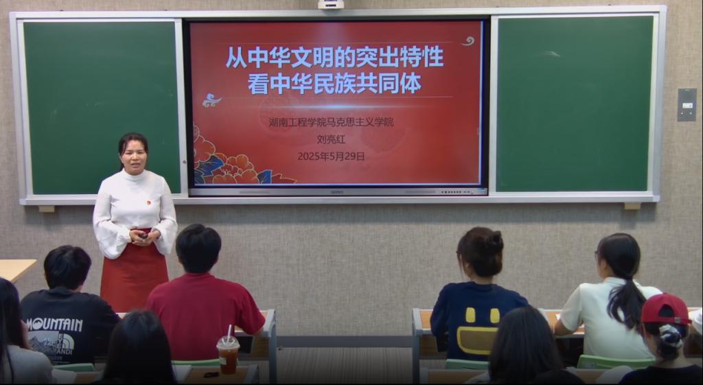 刘亮红教授在授课中指出,中华文明具有五个方面的突出特性。她从不同地理单元对世界主要文明的发展历程与特点进行考察,总结出中华文明发展的连续性特征;以歌曲为切入点,生动展现历史中中华文明在民族与宗教方面的交往交流交融,进而归纳出其包容性特征;从中华民族朝代更替的脉络中,梳理出在大一统制度保障下,“小中原” 向 “大中华” 演进的必然规律,阐释了中华文明发展的统一性特征;以各民族服饰演变为例,展现民族文化的互鉴融通,体现了中华文明守正创新的创新性特征;此外,还通过汉字的广泛适应性和文化附加性,进一步强调了中华文明发展的连续性特征。课堂上,一个个精彩的历史故事娓娓道来,一段段珍贵的民族记忆缓缓重现,让全体师生在感受中华文明突出特性的过程中,潜移默化地深化了对中华民族共同体的认知。学生们纷纷表示,这堂思政课主题鲜明、案例丰富,使他们受益匪浅。