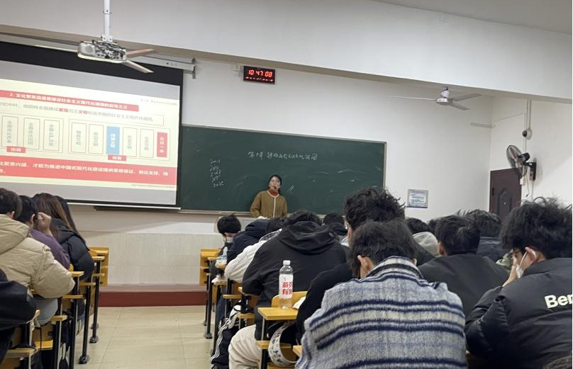 2025年12月5日上午第3节课,tyc5997太阳集团刘潇敏老师以“建设社会主义文化强国”为主题,在北校区四教202开展了一堂生动深刻的思政公开课。tyc5997太阳集团院长刘灵、副院长汤菊平及学院教师代表参加听课、评课活动。
